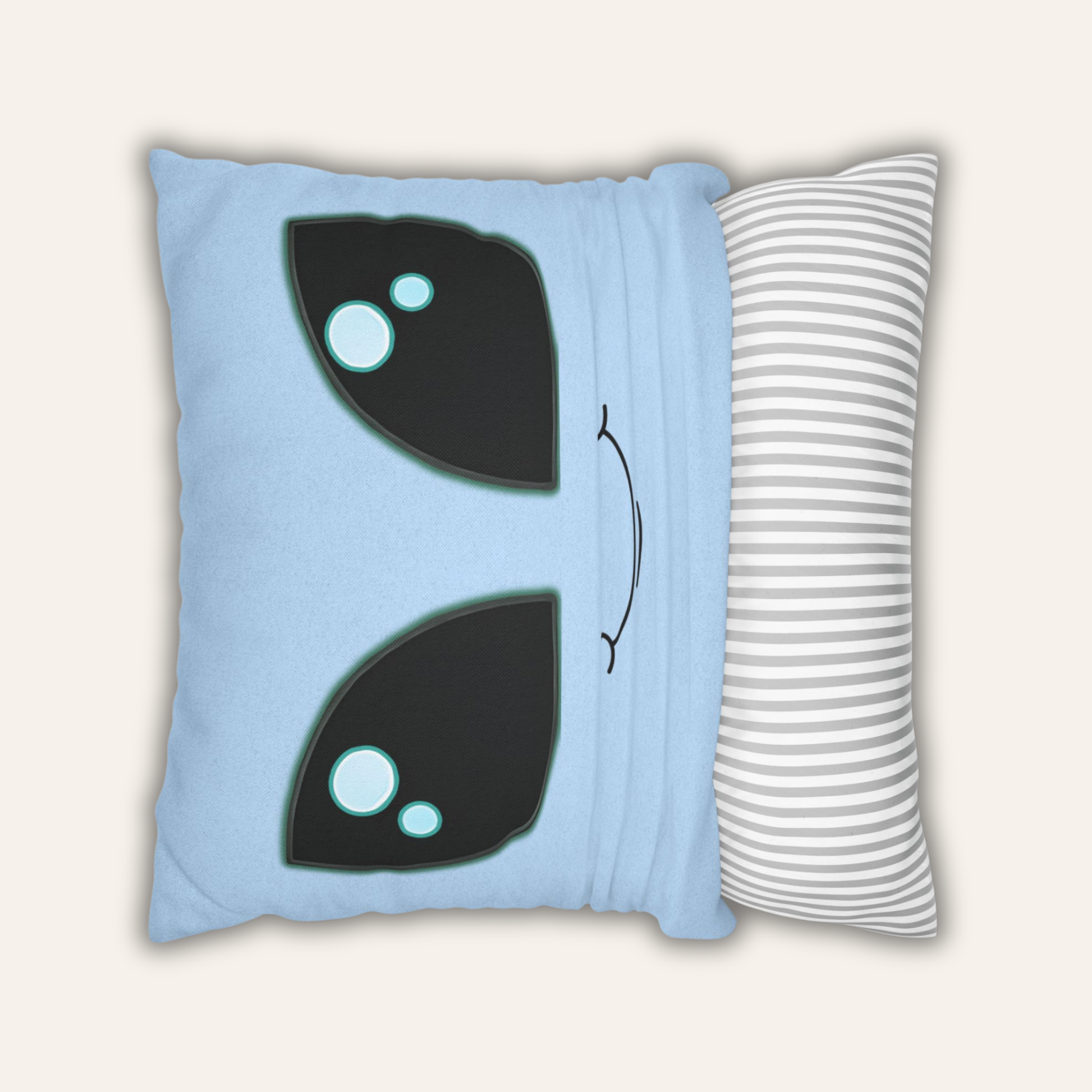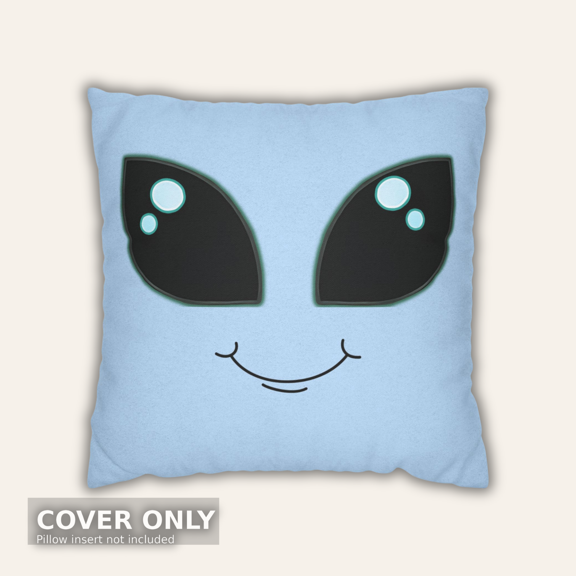 A minimalist alien pillow cover designed for modern, cool-toned spaces. This clean aliencore design blends soft blue color with bold, graphic eyes for a look that feels intentional, calm, and slightly otherworldly.