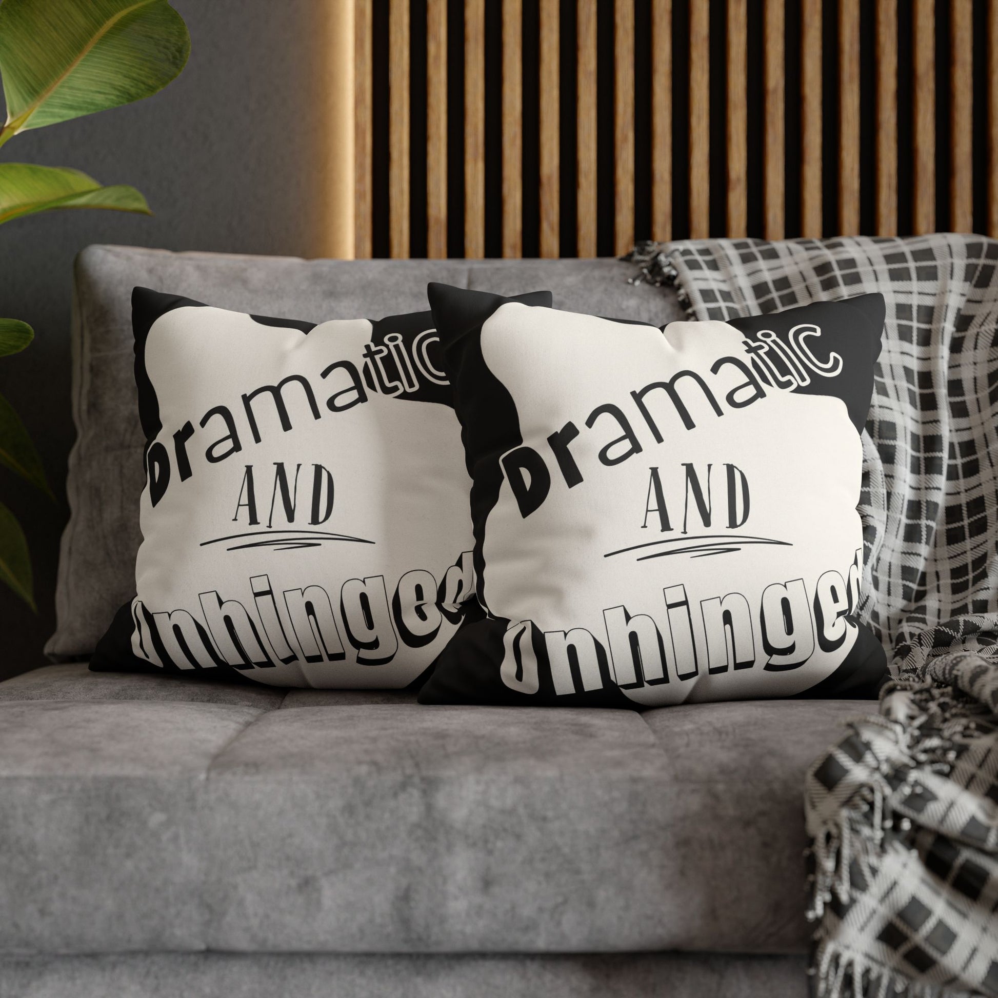 Dramatic and Unhinged — Funny Statement Pillow Cover, Bold Typographic Home Decor