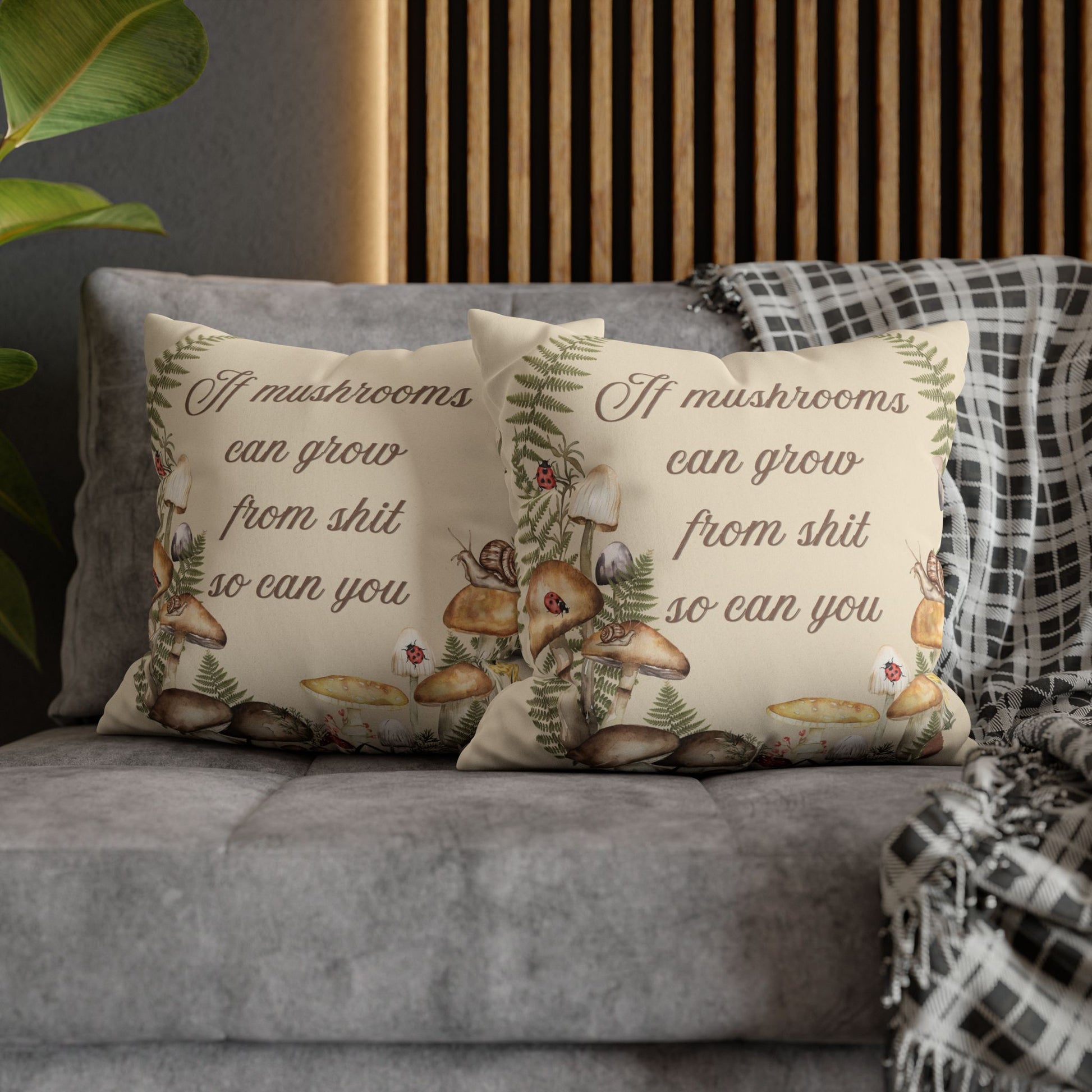 If Mushrooms Can Grow From Shit, So Can You — Vintage Botanical Pillow Cover