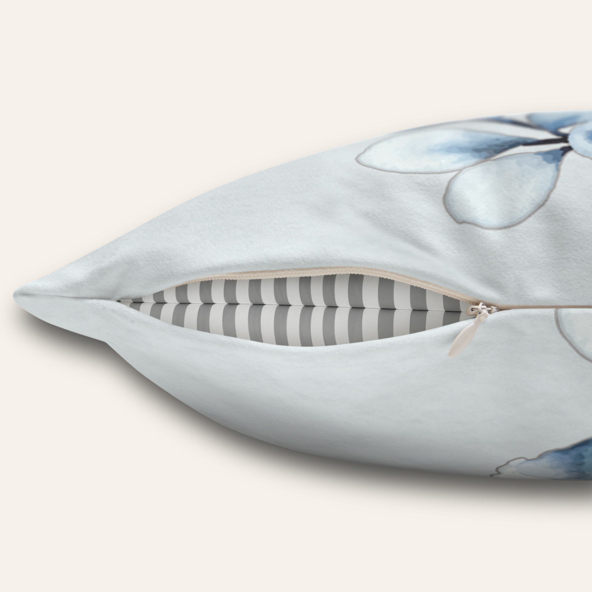 This decorative pillow cover pairs soft blue watercolor florals with a calm, minimalist design—delivering a message that’s equal parts composed and unapologetic. Perfect for those who lead with grace, until provoked.